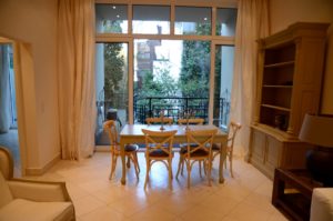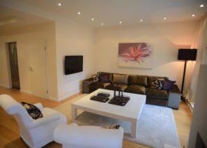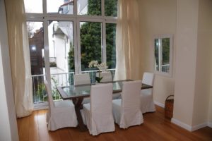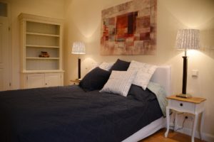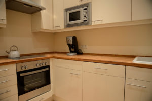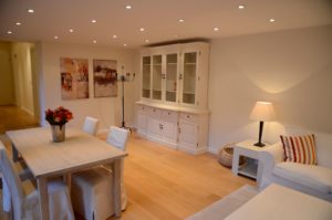 Diese Einheit ist ideal geeignet für eine Einzelperson oder ein junges Paar. Die Wohnung hat zwei sehr großzügige Räume (Wohnzimmer und Schlafzimmer) eine kleine Küche und ein kleines Bad. Die Wohnung hat einen kleinen Garten, der vom Wohnzimmer aus betreten wird. Das Wohnzimmer ist mit elektrischen Jalousien ausgestattet, hat Kabel TV Internet (50Mbit) verfügt über dimmbare Einbauleuchten und hat ein kombiniertes Sofa/Schlafsofa auf dem noch ggfs ein Gast übernachten kann. An das Schlafzimmer schließt sich ein sehr großer begehbarer Kleiderschrank an. Die Küche ist klein aber mit allen Geräten, wie Kühl Gefrierschrank, Waschtrockner, Geschirrspüler etc. ausgestattet. Das Duschbad ist ebenfalls klein und funktionell – hat jedoch keine Wanne.