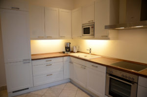 Die Küche ist mit allen Geräten, wie Kühl Gefrierschrank, Waschtrockner, Geschirrspüler etc. ausgestattet.