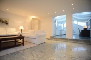 Extrem hohe Decken (3,25m) mit Einbaustrahlern, Speziell gealterter(getrommelter) Marmorfußboden mit Fußbodenheizung, Gespachtelte Wände, Luxus Einbauküche mit allen Geräten, Terrasse mit Hartholzbelag