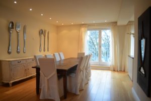 Echtholz Elchen Parkett, Dielenfußboden mit Fußbodenheizung, Gespachtelte Wände, Luxus-Einbauküche, 2 Kamine, 2 Balkone, Galerie, Luxus-Wellnessbereich, Sauna, Aufzug innerhalb des Hauses bis in die Wohnung.