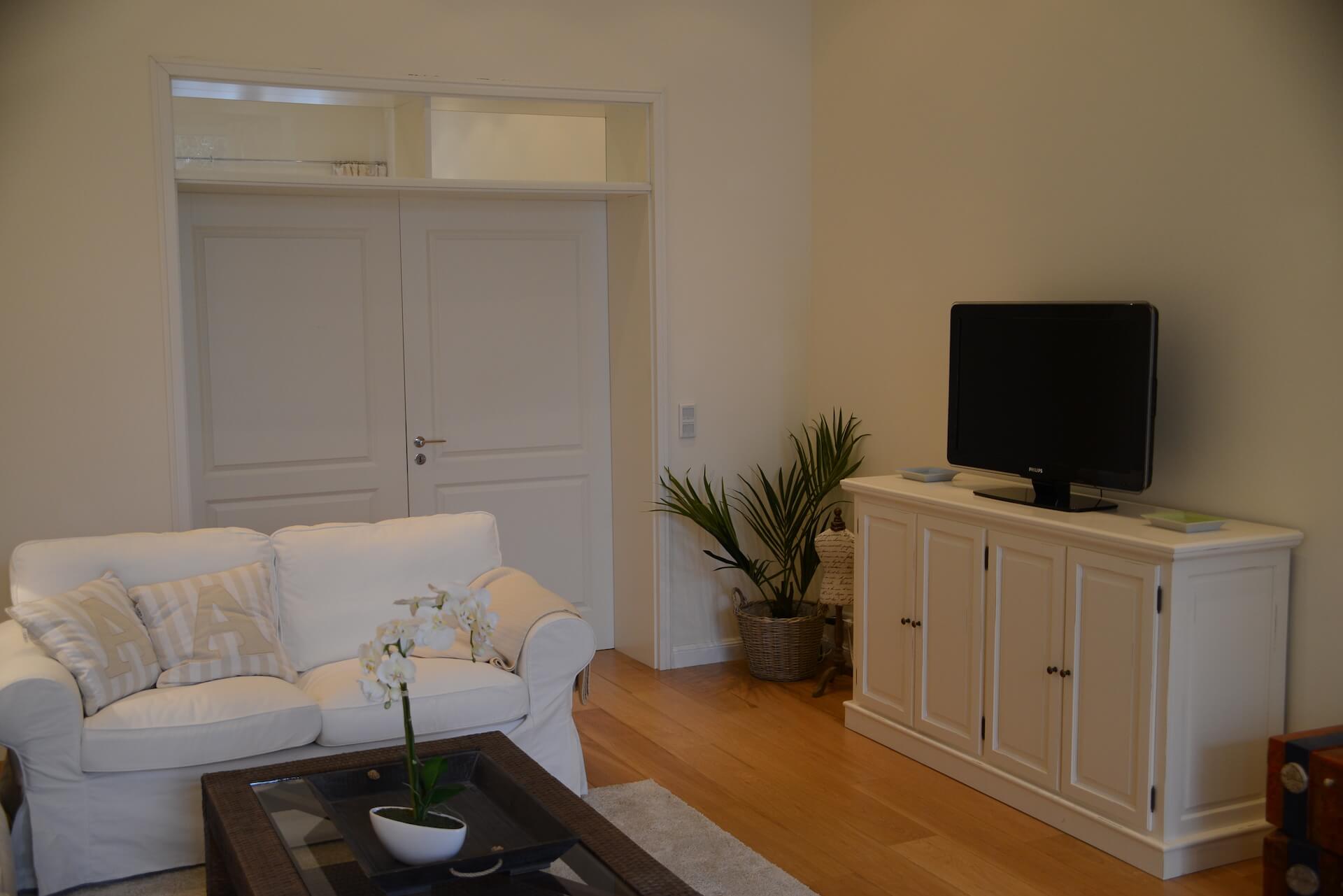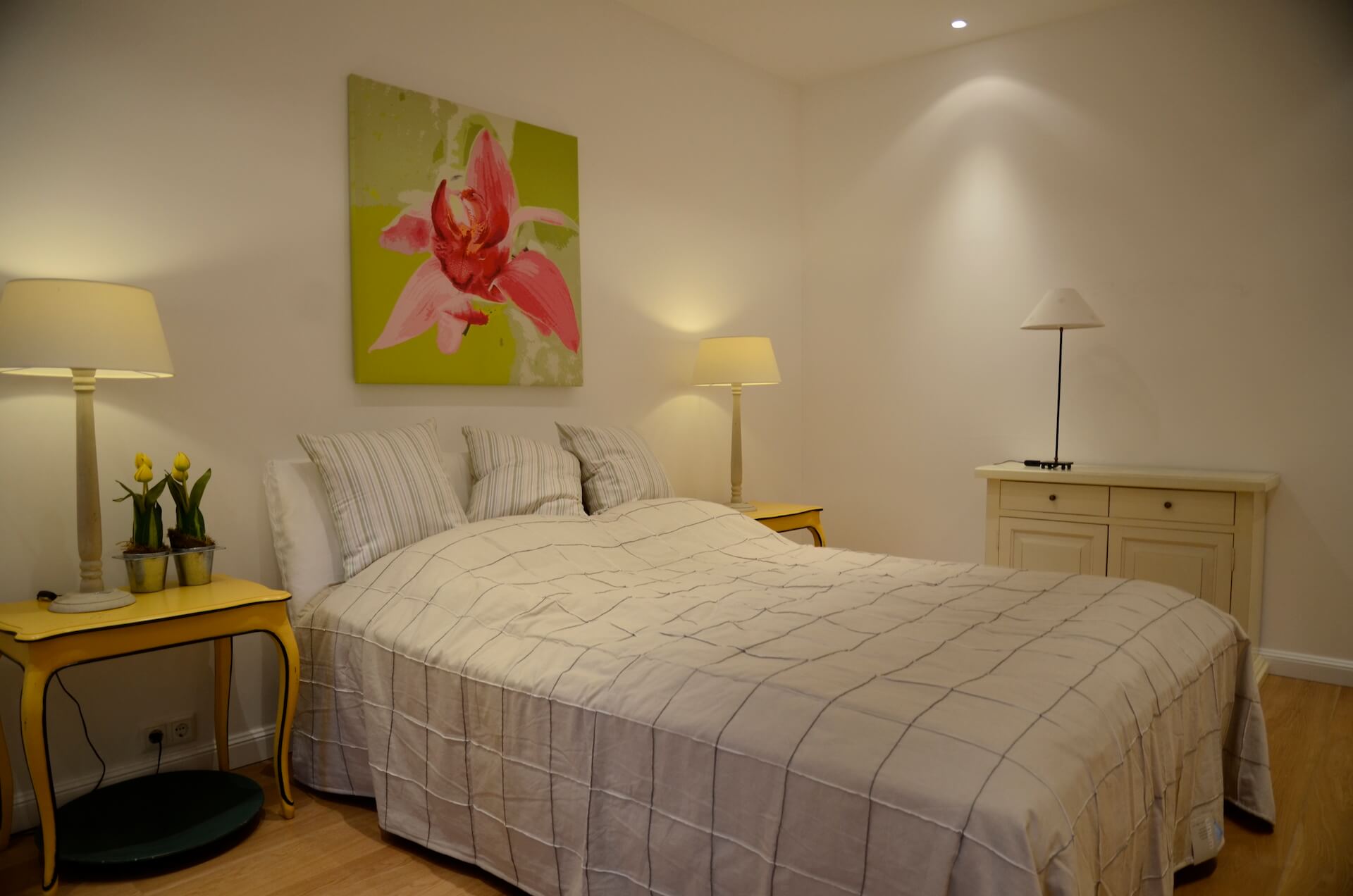 Diese Einheit ist ideal geeignet für eine Einzelperson oder ein junges Paar. Die Wohnung hat zwei sehr großzügige Räume (Wohnzimmer und Schlafzimmer) eine kleine Küche und ein kleines Bad. Die Wohnung hat einen kleinen Garten, der vom Wohnzimmer aus betreten wird. Das Wohnzimmer ist mit elektrischen Jalousien ausgestattet, hat Kabel TV Internet (50Mbit) verfügt über dimmbare Einbauleuchten und hat ein kombiniertes Sofa/Schlafsofa auf dem noch ggfs ein Gast übernachten kann. An das Schlafzimmer schließt sich ein sehr großer begehbarer Kleiderschrank an. Die Küche ist klein aber mit allen Geräten, wie Kühl Gefrierschrank, Waschtrockner, Geschirrspüler etc. ausgestattet. Das Duschbad ist ebenfalls klein und funktionell – hat jedoch keine Wanne.