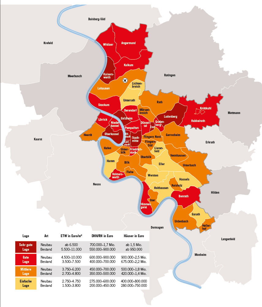 Das Düsseltal / Zooviertel, ist einer der attraktivsten und begehrtesten Stadtteile von Düsseldorf. Das Düsseldorfer Zooviertel zeichnet sich besonders durch seine Grünflächen und das äußerst angenehme Wohnumfeld aus. Viele repräsentative Einfamilienhäuser und kleine, gepflegte Mehrfamilienhäuser mit wenigen Wohneinheiten prägen hier das Bild. Die bekannte Rethelstraße bietet als große Einkaufsstraße viele Dinge die über den täglichen Gebrauch hinausgehen. So sind hier viele Banken, Supermärkte, Apotheken, Ärzte und auch Boutiquen zu finden. Die Anbindung an den ÖPNV über Straßenbahn, Bus, und S-Bahn runden das Bild ab. Über das nahe gelegene Mörsenbroicher Ei gelangt man schnell zur A 52 in Richtung Holland oder auch das Ruhrgebiet. Der Flughafen ist somit genauso wie das Düsseldorfer Zentrum schnell und leicht zu erreichen.
